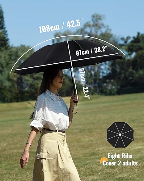Ombrello pieghevole pioggia antivento UV da viaggio - Ombrelli inverso portatile automatico apri chiudi, rivestimento in 210T apertura 97 cm 8 Stecche